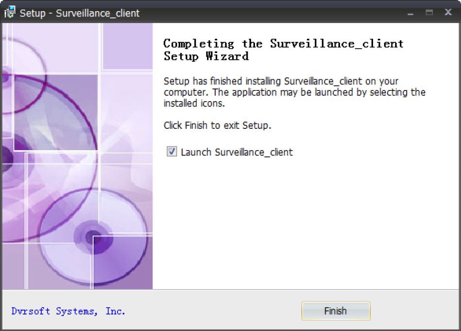 After installation is finished, a shortcut for Surveillance_client will be generated on the desktop. Run the program by double clicking the shortcut Surveillance_client on the desktop or click Start ->All Programs^ Dvrsoft\Surveillance_client ^ Surveillance_client.