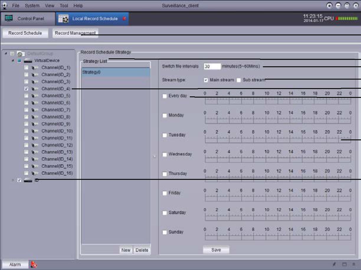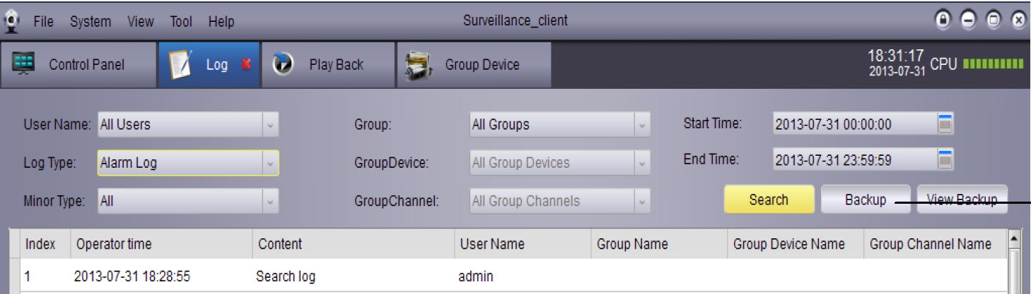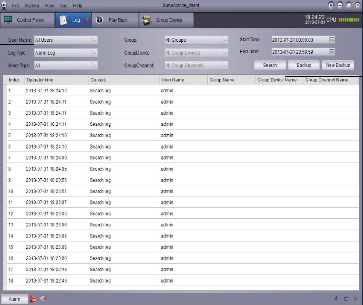 Alarm will appear if disk space is sufficient. When the disk space for saving is less than set space, the alarm will appear. The minimum value is 500MB.