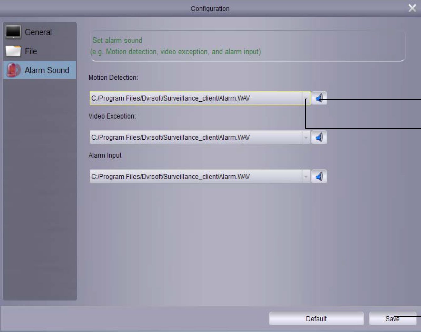 Customize alarm sound: Allow you to configure alarm sound. You may use any WAV file to be the alarm sound.