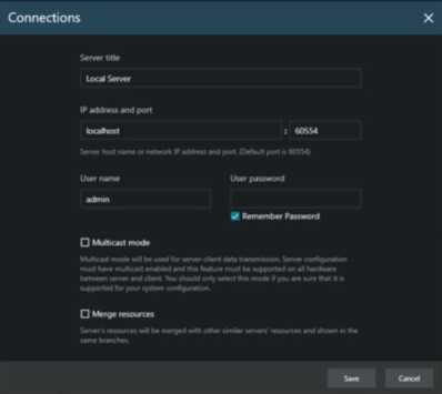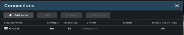 The Connection button opens server connection setup window and displays the number of currently configured servers.