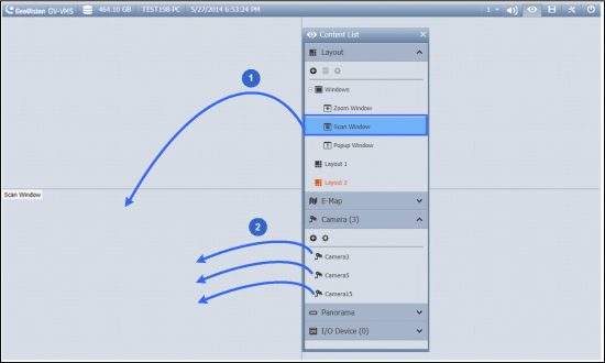 > Windows in the Content List and drag Scan Window to a live view grid.