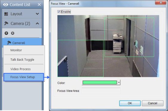 You can create up to 7 close-up views per camera and place these created close-up views inside live view grid. This function is not supported for Fisheye and PTZ Cameras.