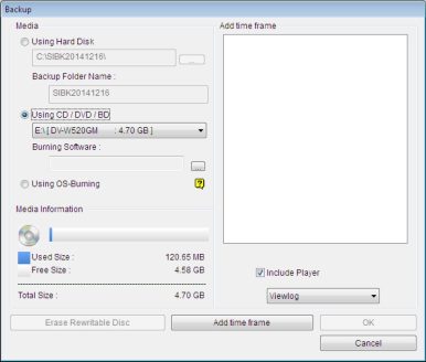 In ViewLog, click Toolbar > Tools i—i > Backup. This dialog box appears.