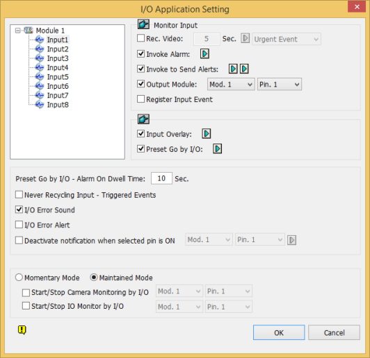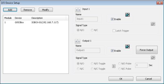 For details on I/O setup, see Chapter 6 I/O Applications, GV-VMS User’s Manual.