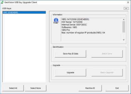 GV-USB Dongle can be upgraded to include more functions or enhance the system. You need to collect the data from your dongle and send it back to GeoVision for an upgrade. The upgrade is charged services. To upgrade your dongle, follow these steps: