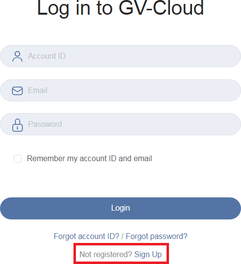 IMPORTANT: Keep your account ID number, which is required each time you log into GV- Cloud.