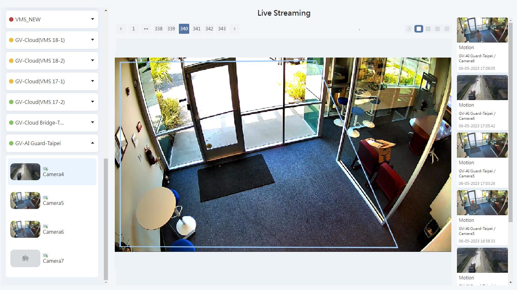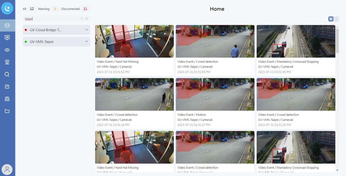 GV-Cloud VMS is a cloud-based video surveillance and data center solution. Thousands of on-site cameras, alarm devices, motion triggers and AI events can be efficiently monitored from a single cloud-powered platform. With GV-Cloud VMS, you can effortlessly access live streams, review playbacks, and query events from anywhere using a web browser.