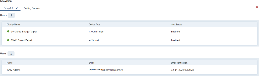 5.If you remove an existing host with event snapshots and cloud backup, its data will be removed from GV-Cloud VMS.