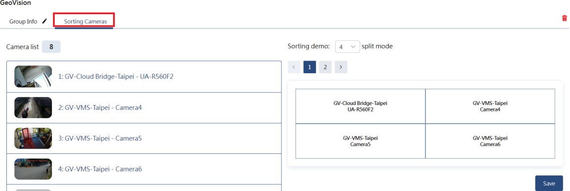 After assigning hosts and users to a group, you can configure how camera channels from the hosts are arranged across different screen divisions.