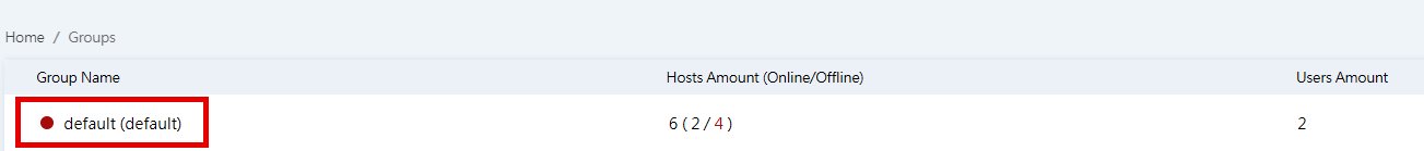 On the Groups page, you can specify which account users have access to which hosts by creating groups. A group named “default” has been created with access to all hosts.