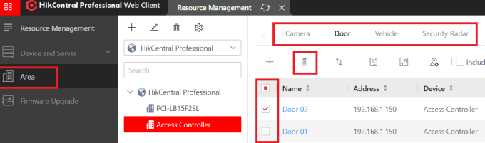 ** Note: After deleting the device from area, the license should have freed up. You can then check the licenses in HikCentral to confirm (top right, Maintenance and Management > License details)