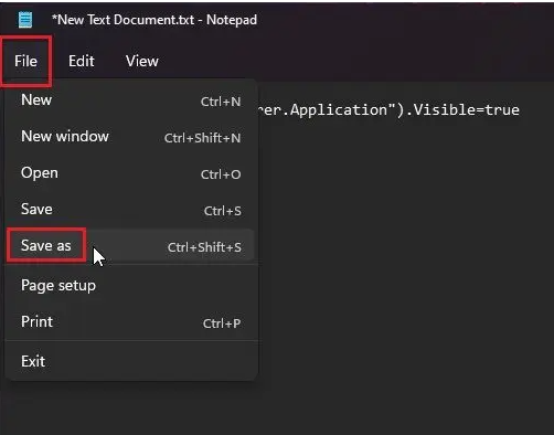3. After that, click on File -> Save as.