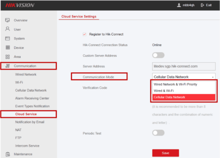 There are three types of Communication Mode via Communication > Cloud Service > Communication Mode: