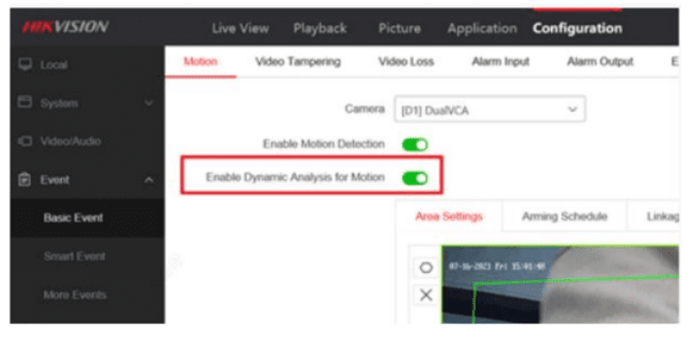 Notes: If search motion detection VCA playback, Enable Dynamic Analysis for Motion is necessary.