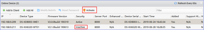 For some devices, you are required to create the password to activate them before they can be added to the software and work properly.