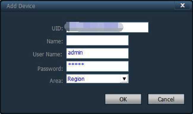 Fill in the required information and click the OK button to complete the device addition.
