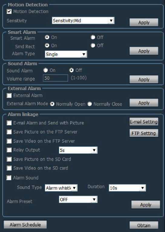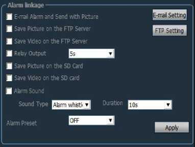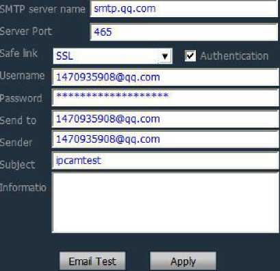 Receiving address: Email address to receive alarm pictures
