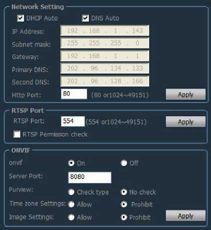 ONVIF ON and OFF, ONVIF port, time and time zone settings, image parameter settings, etc .;