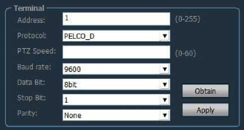 Can set PTZ protocol, baud rate, data bit, stop bit and other information
