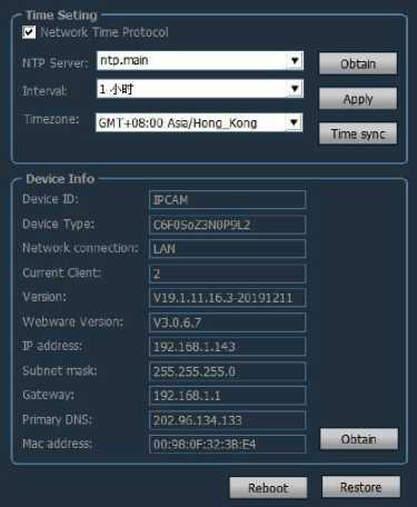 Can obtain the current information of the device; including the device name, software version, IP address, MAC address, etc .; can restart the device and restore factory settings