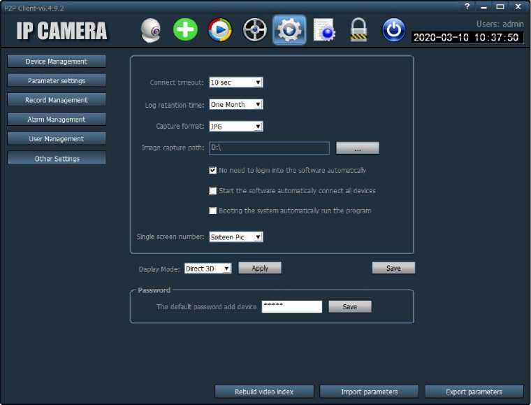 [Password] password of the device, default is admin
