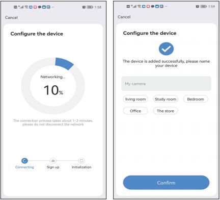 when you hear the prompt voice, click the blue button below, wait for device to connecting successfully, then edit the device name.