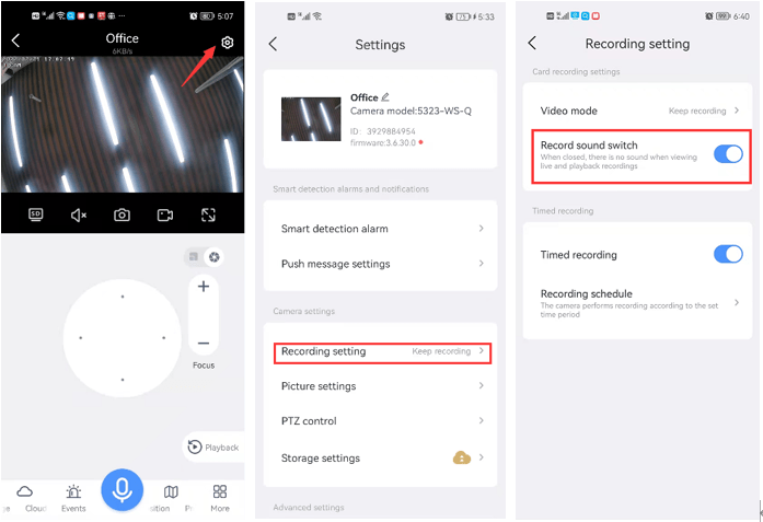 If still can’t hear sound, please go to setup interface—recording settings—verify that the “Record Sound Switch” option is enabled.