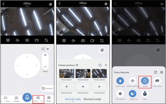 2, go back to record interface–click Preset–add more than two different positions–go to More–click cruise.