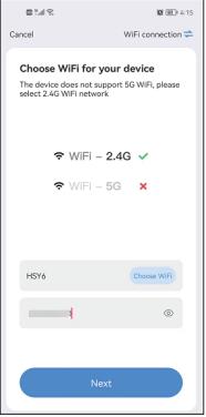 3, Select your home wifi (the camera only support 2.4Ghz wifi, not support 5Ghz), click “next”.