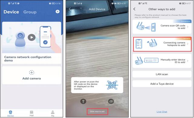 1, Please click “Add camera”—other ways to add—Connecting camera hotspot to add.
