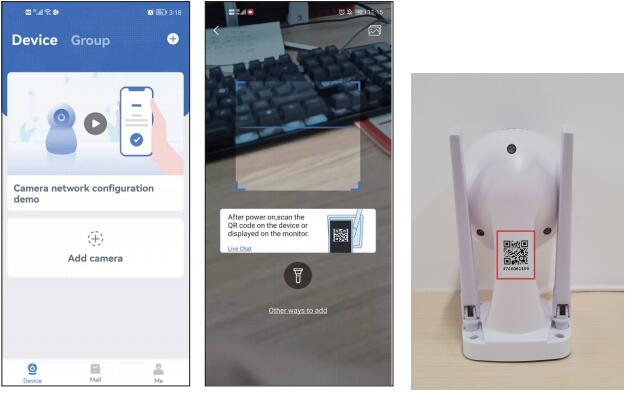 You will get a QR code on your mobile phone, aim the QR code of the mobile phone at the camera lens at a distance of 4-5FT.