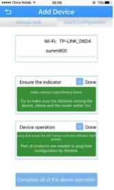 Enter your Wi-Fi network password and select the two options Ensure the indicator and Device Operation.