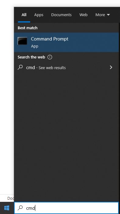 The easiest and fastest way to check the network of your computer is to open up the command prompt. Open the Windows menu and type in “cmd” for command prompt.