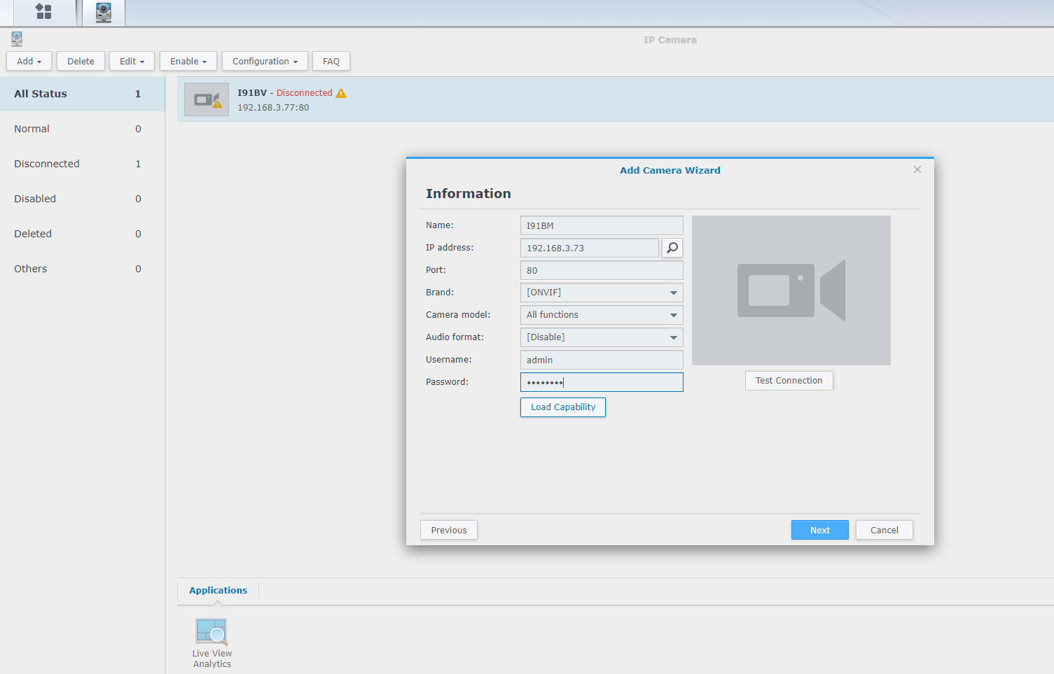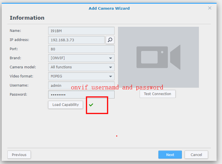 5. Click Load Capability and test connection to verify the adding result. If you can see the live view image of the camera, the connection is successful.