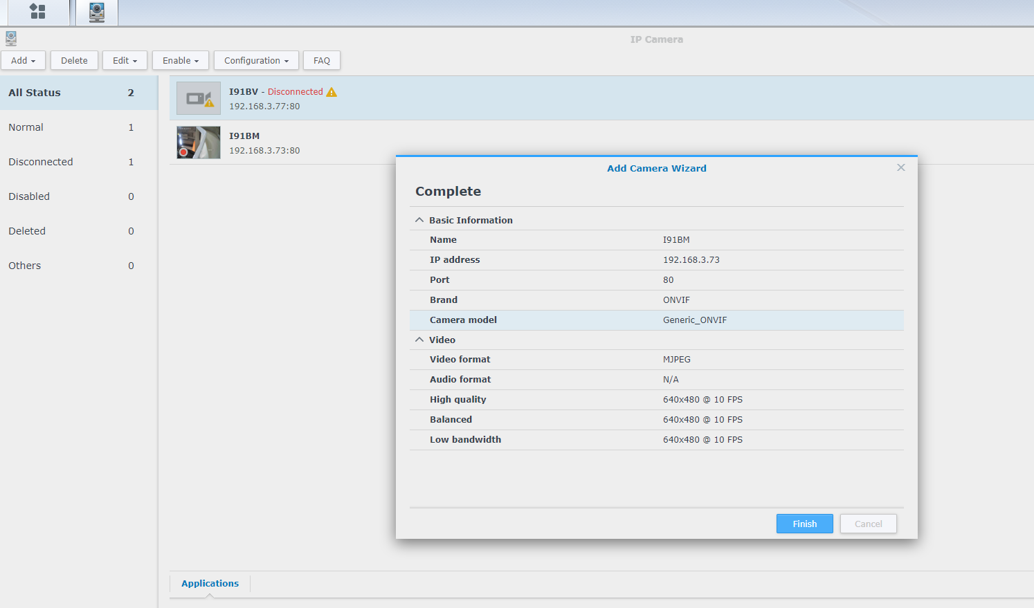 Finally, the settings on NAS are finished. Please remember the path of the camera on NAS. The path can be found in the left corner of the picture above.