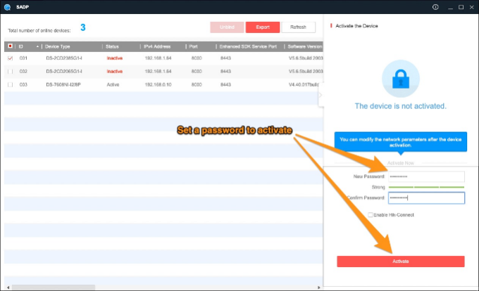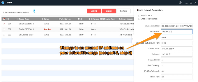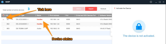 Install Hikvision’s SADP Tool and run it on a PC that is on the same network as the inactive device.