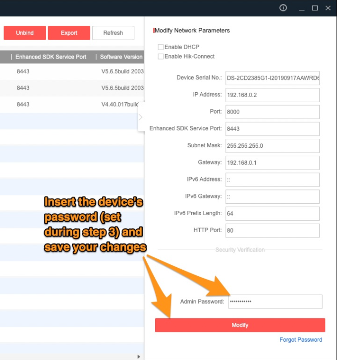 Finally, type in the password that you activated the device with during step 3, and then click “Modify” to save your changes.