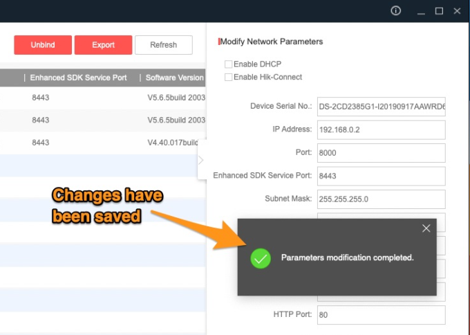 You now need to change a few of the “network parameters” in the right-hand side flyout so that the device can be accessed on your network.