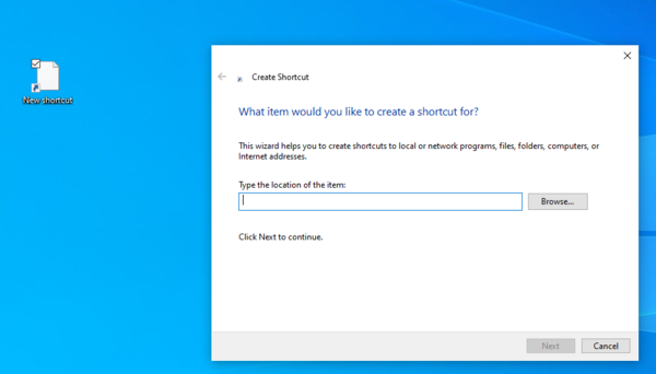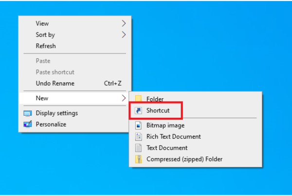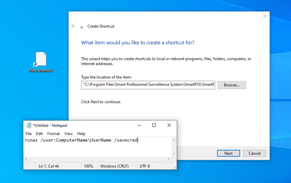 2. First, we need to make a manual shortcut for SmartPSS so we can add our syntax. Right click on the desktop, choose new and then choose shortcut.