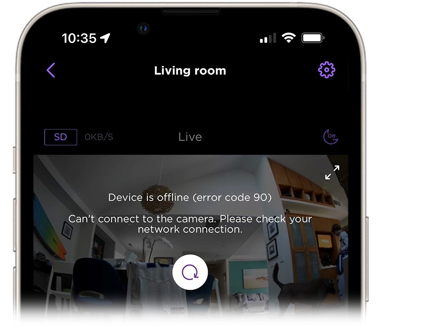 If you get an “offline” error when trying to view your smart home camera or doorbell live stream, tap the Refresh