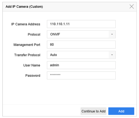 Step 2 Click the Custom Add tab on the title bar to enter the Add IP Camera interface.