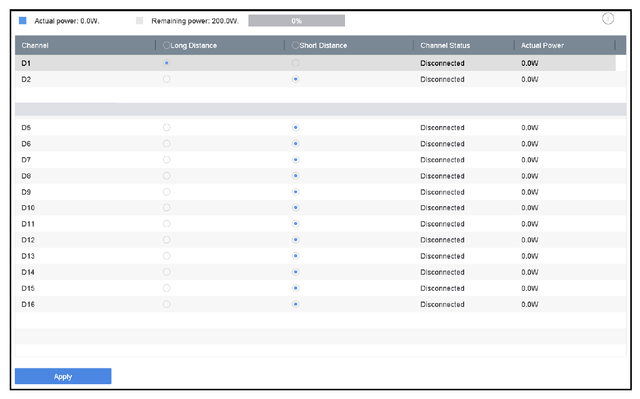 When long-distance PoE transmission (100 to 300 m) is required, enable long distance mode for the PoE channel.