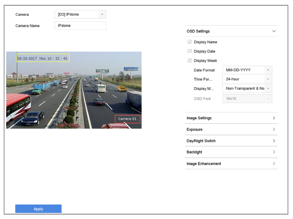 You can configure the OSD (On-screen Display) settings for the camera, including date/time, camera name, etc.