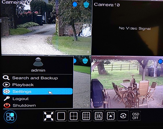 On the DVR click on the “Start” button in the bottom left corner of the screen and then choose “Settings” from the popup menu, if you can not click it or its greyed out login to the DVR and try again.