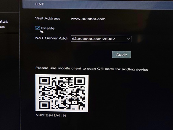 Once NAT has been enabled, a QR code should appear. But if it does not, do not worry. The QR code can be found in a different section. If the QR code does not appear in NAT, it can be found in Information → QRCODE. If you are unable to scan the QR code for some reason, there will also be a serial number that will show below the QR code that you can input manually in order to connect your cameras to your phone.