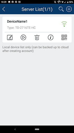 Once saved it will take you back to the server list page and there should now be one entry. All things being well the little wifi icon on the entry should be a solid and green colour at which point you can tap on the back arrow (top left) to take you out and back to your live camera feeds. If the Wifi icon is a grey/black colour and searching then tap on the pen and paper icon to allow you to edit the information and make sure all information is correct re-typing the password for example is a common culprit as is auto correcting on the user and domain host and save to keep the settings.