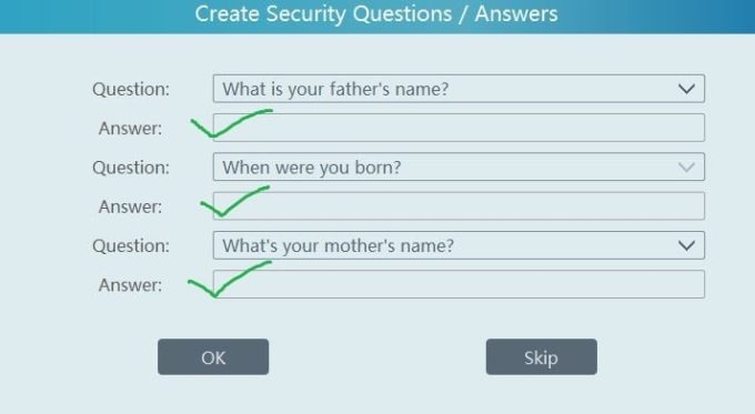 After the sign-in, we have to give these optional answers to recover password in case we forget them. It is an option. You can skip the process too if you want.
