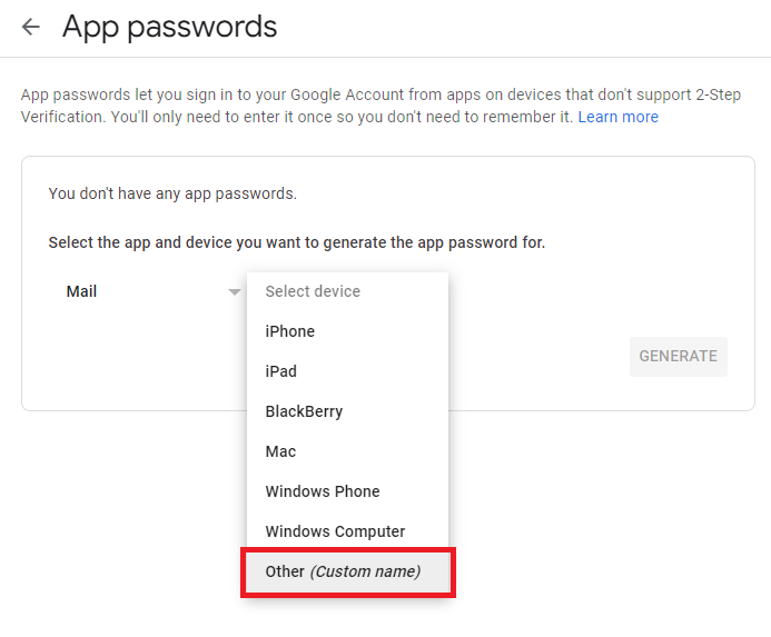 Then select Other (Custom name) from the drop-down