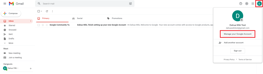Select Manage your Google Account