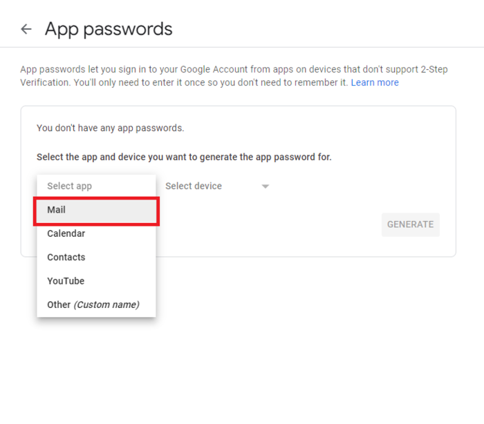 Then select Mail from the drop-down
